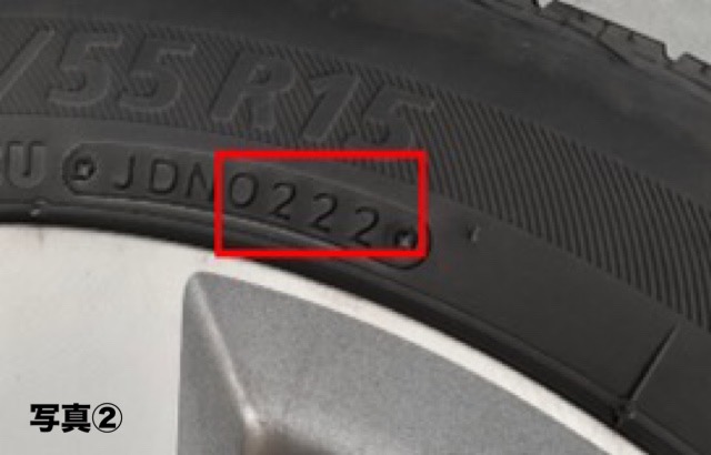 たとえば、「0222」とある場合、これは2022年の2週目(1月初旬頃)に製造されたタイヤということです。ただし、4〜5年で交換というのは、一般的な目安です。日頃の走行環境や保管状況などによっては、4年未満で交換するケースもありますので、ほかの3つのポイントを組み合わせて交換時期を検討しましょう。(写真②参照)