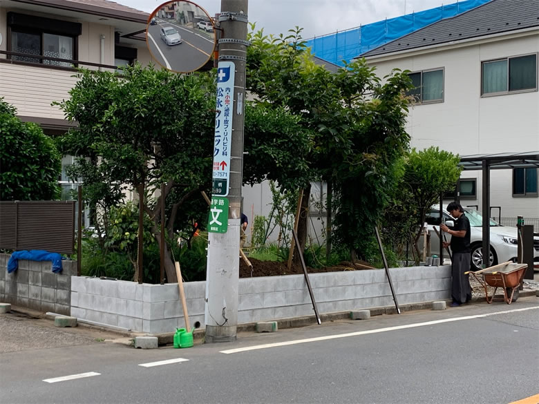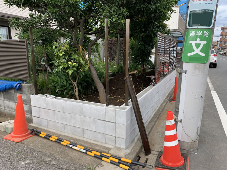 古い塀を改修する場合、自治体によっては助成金が出る場合があります。その助成金の申請要件として、このお客さまが住んでいる自治体では、ブロック塀を設置する際には60cm以下にしなさいという項目があったのでこのような対応をさせていただきました。