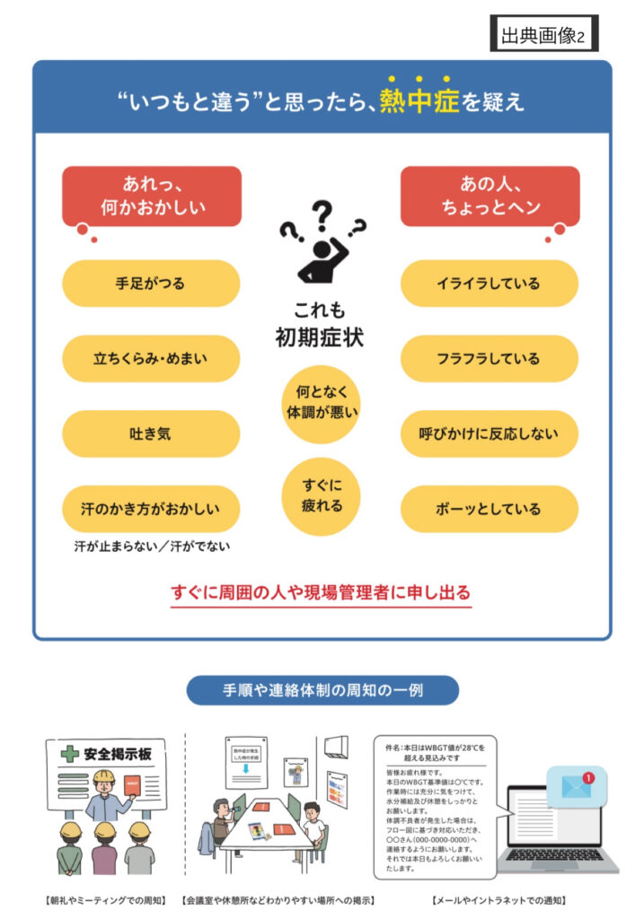 以上のような背景から今回の改正では労働安全衛生規則に「熱中症を生ずるおそれのある作業」が明記され、「早期発見の体制」や「重篤化防止措置の実施手順」の整備を周知が罰則付きで義務付けられました。
