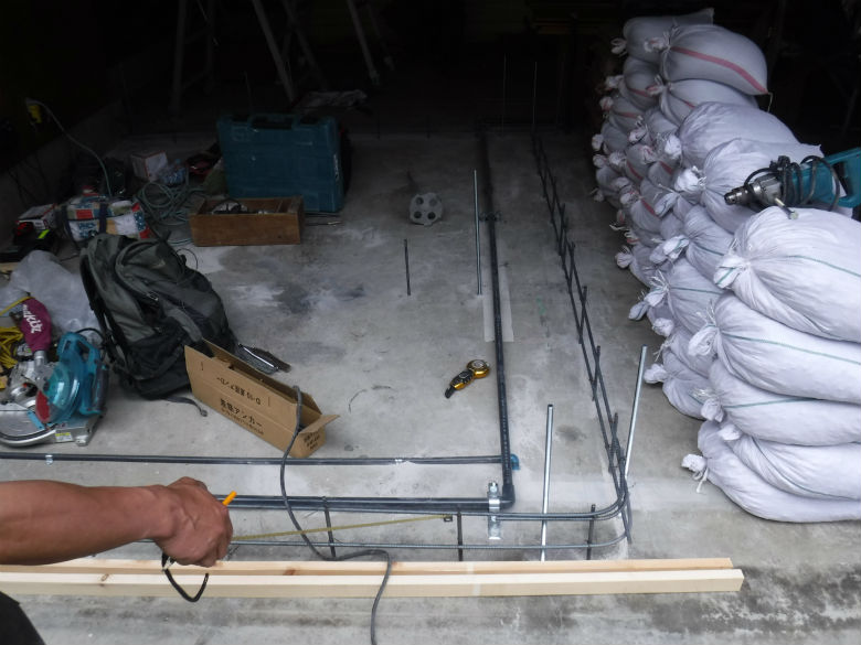 まずは墨出しをした後に内部の間仕切壁となる部分の基礎を造り上げていきます。